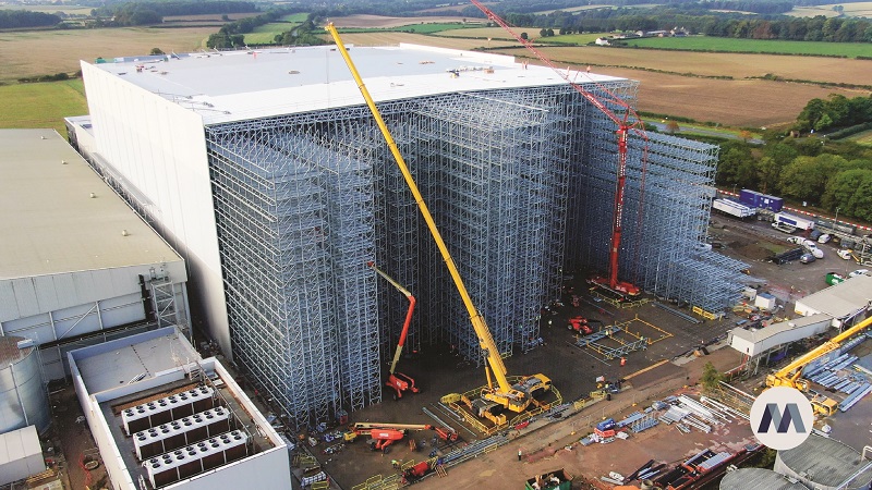 £130 Million Magnavale Easton Development Over 75% Complete Magnavale, a UK-based provider of temperature-controlled storage, is on track to complete its £130 million fully automated facility in Easton, Grantham by late 2024. The project, initiated in 2022, will consist of a 45-meter-high facility with 101,000 frozen pallet positions. Racking installation in the high-bay area is over 75% complete, and all 13 automated cranes have been installed. In the low-bay area, 20 loading docks are near completion, along with conveyors and monorail systems for automation. The development aims to become Europe's most advanced and efficient temperature-controlled store, operating solely on renewable energy and accommodating a total of 145,000 pallets. (link)